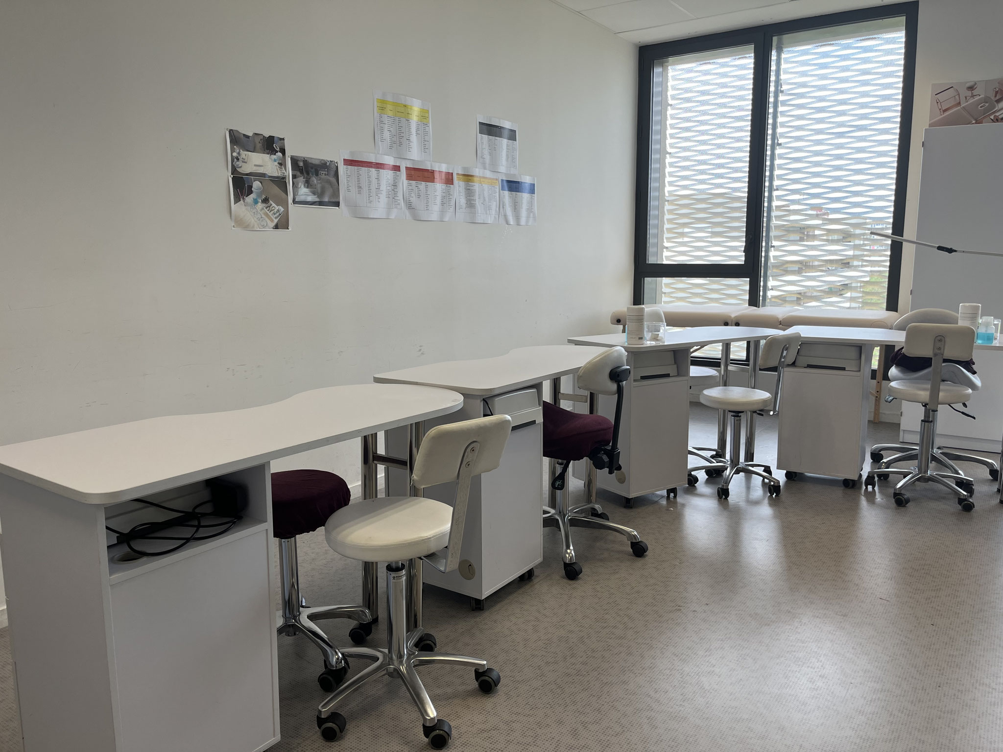 L’ensemble des équipements professionnels est mis à disposition des apprenti(e)s : lampes UV, chauffe-cire, et consommables spécifiques (compresses, gants, pinceaux, spatules, etc.), ainsi que tous les produits esthétiques requis pour les mises en situation.
